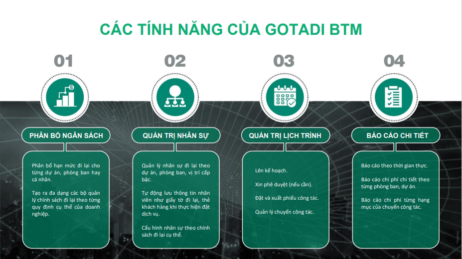 Gotadi BTM có hệ thống tự động 100% theo thời gian thực với mức giá đúng nhất và kết nối trực tiếp với các hãng hàng không, hệ thống khách sạn rộng khắp Việt Nam.