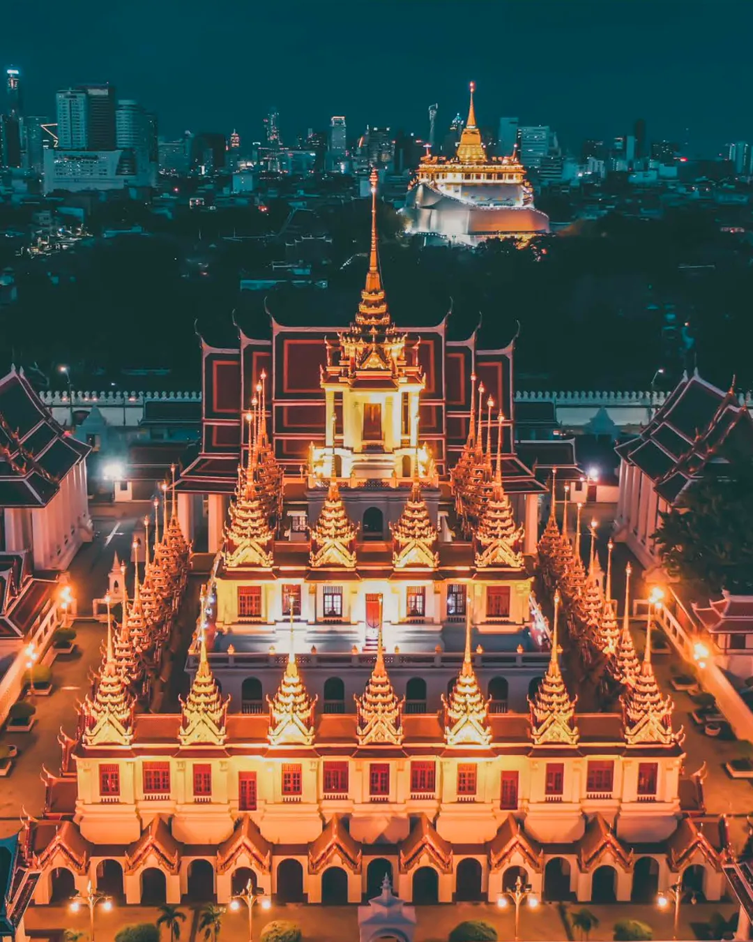 Chùa Wat Ratchanadda nổi tiếng với Loha Prasat – ngôi tháp sắt độc đáo, biểu tượng kiến trúc Phật giáo Thái Lan.
